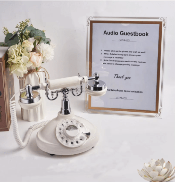 Looking to add something unique and cool to your wedding or birthday party? Our audio guestbook phone goes beyond traditional written messages, allowing guests to express themselves beyond the confines of pen and paper. It not only provides easy-to-use features but also delivers flawless sound quality, even in noisy surroundings.